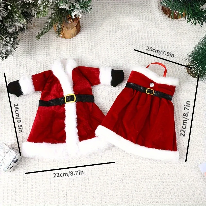 Festive Red Wine Bottle Cover Dress Christmas Skirt Wine Decoration Velvet Fabric Reusable Wine Gift Access Holiday Bottle Decor